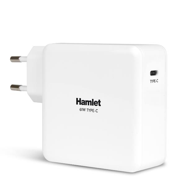 Hamlet 61W Type-C Charger è un alimentatore universale che permette di ricaricare velocemente Notebook e dispositivi mobili come Smartphone e Tablet PC dotati di porta USB-C. La tecnologia USB Power Delivery rileva automaticamente il dispositivo collegato e fornisce la potenza corretta per la ricarica più veloce possibile. Il cavo di ricarica USB Type-C da 1,8 metri è incluso nella confezione.