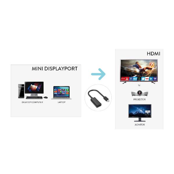L’adattatore video da Mini DisplayPort a HDMI trasforma la porta Mini DisplayPort (mDP) del computer in uscita video HDMI e permette di collegare monitor, televisori e proiettori HDMI a computer con uscita Mini DisplayPort. L’adattatore supporta risoluzioni fino a 1080p.