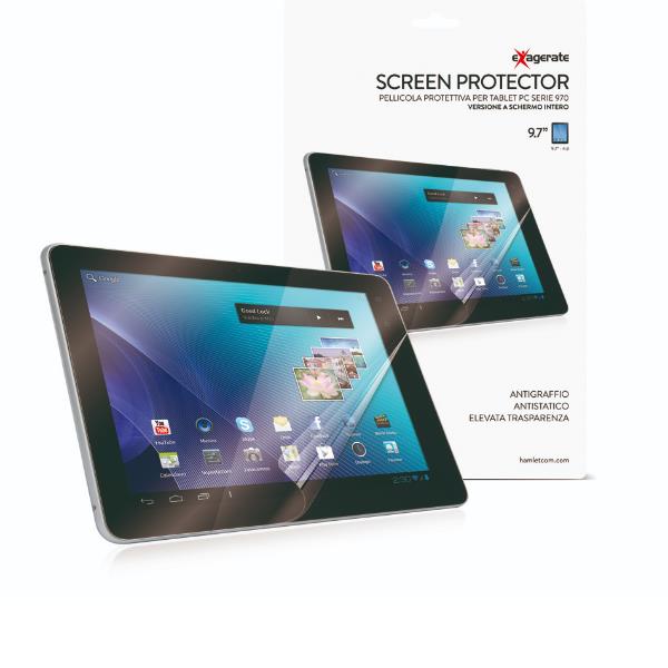 Exagerate Screen Protector è una pellicola protettiva progettata per la protezione dello schermo dei Tablet PC Zelig Pad della serie 970 dotati di schermo 4:3 da 9.7 pollici. Grazie alla sua elevata trasparenza permette di proteggere lo schermo del Tablet da graffi e ditate mantenendo un’ottima qualità di visione.