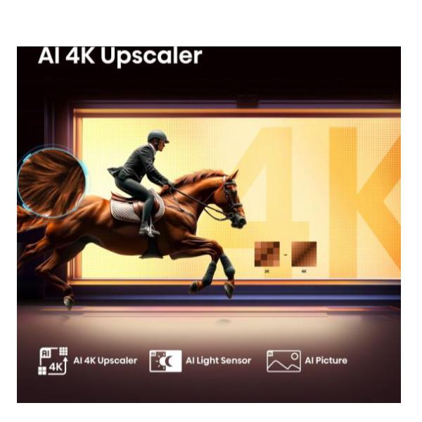L’Upscaler Al 4K di Hisense sblocca una chiarezza superiore per tutti i tuoi contenuti preferiti. Questa funzione intelligente rimodella non solo i tuoi amati classici e filmati, ma anche le moderne trasmissioni TV, i film e persino i contenuti in streaming in una straordinaria qualità 4K. Ogni pixel viene elevato alla potenza del tuo televisore.