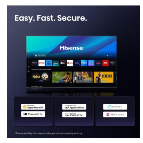 - Sistema Operativo VIDAA: Interfaccia smart intuitiva, veloce e personalizzata che impara le tue preferenze per un accesso rapido a tutto l’intrattenimento.
