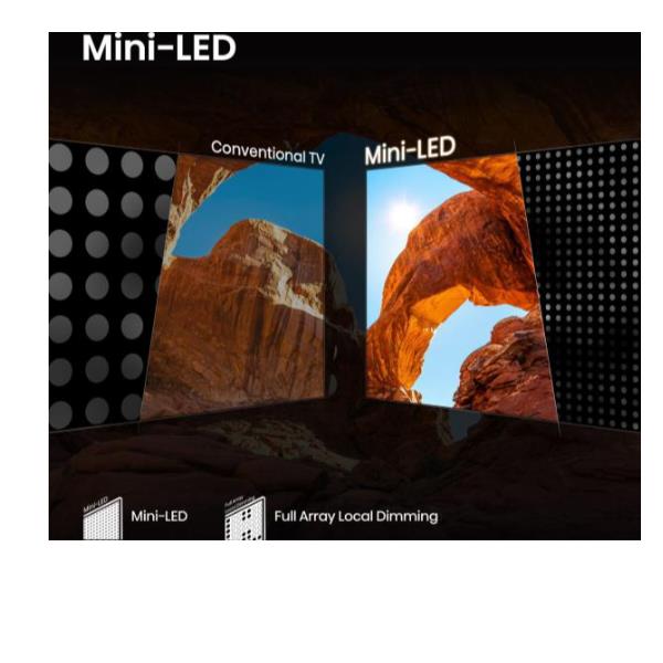 - Pannello Mini-LED 4K: Ottieni neri profondi e luminosità intensa grazie alla tecnologia Mini-LED, che garantisce un contrasto eccezionale per dettagli sorprendenti in ogni scena.