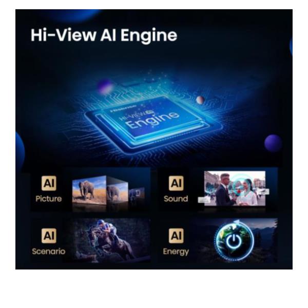 - AI 4K Upscaler: Il motore AI Hi-View trasforma in tempo reale qualsiasi contenuto, anche non in 4K, in una qualità visiva straordinariamente nitida e definita.