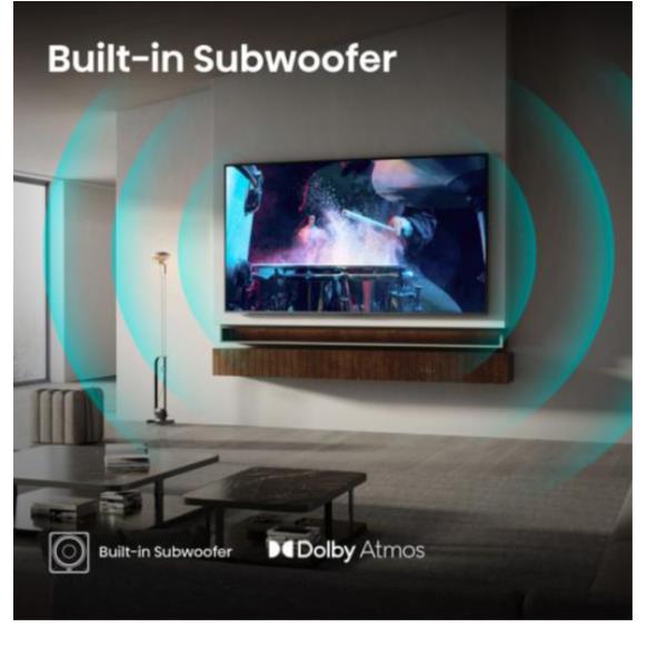 - Audio Dolby Atmos e Subwoofer Integrato: Il suono avvolgente ti circonda, dai dialoghi nitidi ai bassi profondi delle colonne sonore, senza necessariamente ricorrere a sistemi esterni.