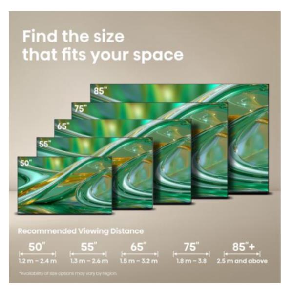 Hisense offre una gamma completa di dimensioni di schermi, pensati per integrarsi perfettamente nella tua casa, qualunque siano le tue esigenze.