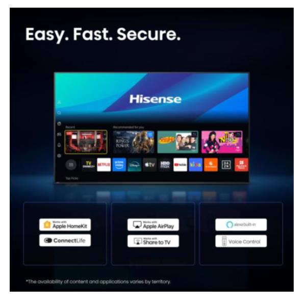 La soundbar Hisense è progettata per funzionare in perfetta armonia con i TV Hisense. Funzionalità come Hi-Concerto, TV Mode, Room Fitting Tuning e EzPlay creano un’esperienza audiovisiva fluida e integrata. *Hi-Concerto, Room Fitting Tuning e TV Mode sono compatibili solo con alcuni modelli selezionati di TV e Soundbar Hisense.