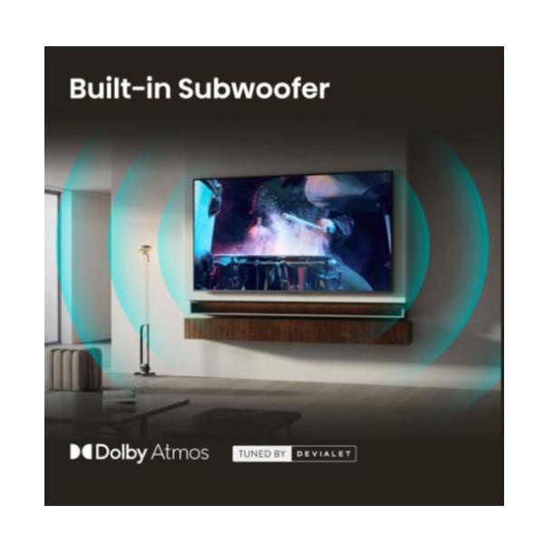 Senti il ??rombo di ogni esplosione e il ritmo di ogni colonna sonora senza hardware esterno. Il subwoofer integrato riproduce bassi profondi e potenti direttamente dal televisore, aggiungendo corpo e ricchezza, per un suono più pieno e cinematografico, che porta l’energia del grande schermo a film, sport e giochi.
