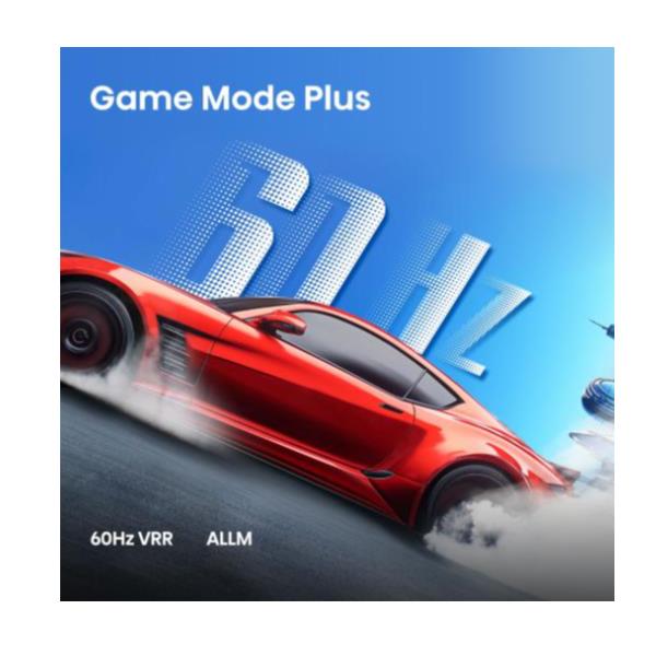 Migliora la tua esperienza di gioco con Game Mode Plus. Grazie a VRR e ALLM, il pannello a 60 Hz mantiene basso il ritardo di input e l’azione fluida, rendendo il gameplay fluido e naturale, così anche le sessioni più informali risultano pulite e reattive.