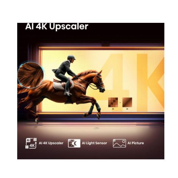 Non importa cosa stai guardando: l’Upscaler 4K AI lavora in tempo reale per migliorare la nitidezza di qualsiasi contenuto, portandolo vicino alla qualità 4K. E con il Movimento Fluido AI, anche le scene d’azione più veloci o gli eventi sportivi più frenetici risultano fluidi e privi di fastidiose sfocature.
