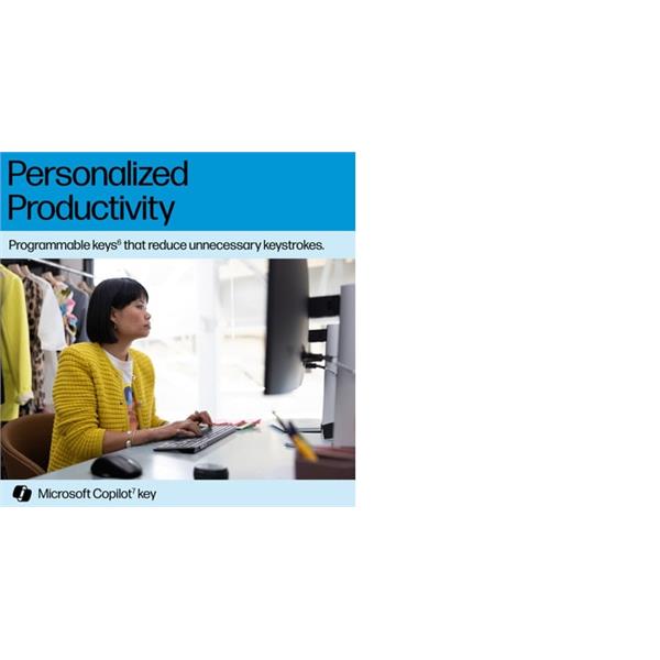 Lavora serenamente con una tecnologia che ti aiuta a mantenere alta la produttività, sempre e ovunque. Questa tastiera wireless multi-dispositivo è progettata per elevate prestazioni, con la tecnologia di ricarica ultrarapida a supercondensatore, una perfetta connettività e funzionalità di personalizzazione.Passa da un dispositivo all’altro senza interruzioniConnettiti in modo semplice e sicuro su più sistemi operativi[4] e con più dispositivi: due tramite Bluetooth e uno tramite il modulo HP Unifying Dongle a 2,4 GHz. Inoltre, puoi passare facilmente da un PC all’altro mediante l’apposito tasto multi-dispositivo[5] della tastiera.Produttività personalizzataAumenta la produttività i con tasti programmabili[6]. Basta premere un semplice tasto per accedere alla potenza di Microsoft Copilot[7] e lavorare in modo più efficiente e smart.Microsoft Swift PairBasta un solo clic per associare facilmente il tuo PC Windows 10/11. Quando il messaggio pop-up ti chiede se desideri collegare il dispositivo, tocca Sì per una connessione Bluetooth® immediata.Funzionamento multi-dispositivoPassa facilmente da un PC all’altro (tastiera, mouse, monitor e così via) con un solo clic del tasto multi-dispositivo della tastiera. [5]Dongle HP UnifyingLa connessione è sicura grazie alla crittografia AES a 128 bit. È possibile associare fino a 8 dispositivi HP e riporre il modulo HP Unifying Dongle nell’apposito vano della tastiera per averlo sempre a disposizione. [6]Precisione e comfortDigitazione comoda e accurata con una tastiera full-size con copritasti sagomati.Ricarica ultrarapidaSempre pronto all’azione, il supercondensatore ha un design senza batteria che si ricarica completamente in soli 3 minuti. [1,13]Resistente ai versamenti di liquidiIl design resistente ai versamenti di liquidi aiuta a prevenire i danni causati da versamenti accidentali di caffè, bibite o acqua. [12]