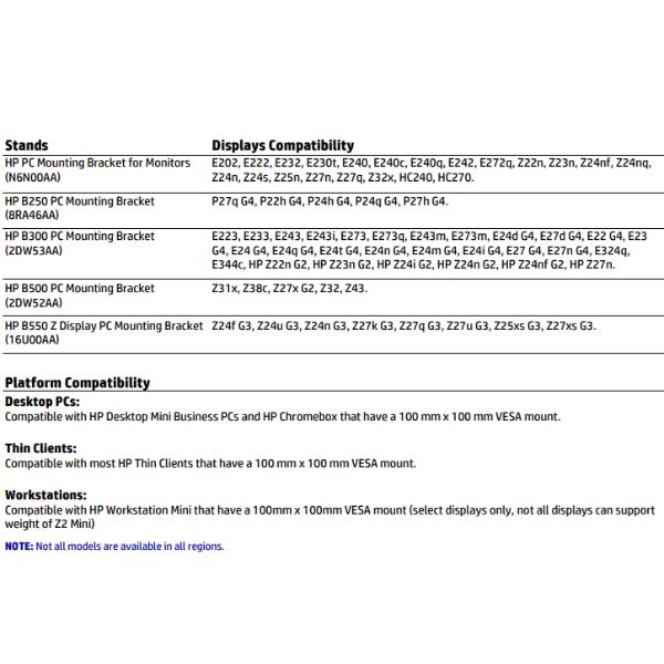 Personalizzate la vostra soluzione grazie al supporto HP B250 PC Mounting Bracket che consente di collegare HP Workstation, HP Desktop Mini, HP Chromebox o HP Thin Client selezionate direttamente sul retro di una serie di monitor HP serie P.