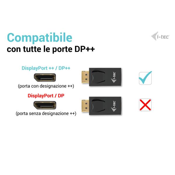 Estendete il vostro desktop con un monitor HDMI esterno tramite la porta DisplayPort. Questo adattatore supporta una risoluzione fino a 4K/30 Hz ed è adatto all’uso con tutti i dispositivi dotati di una porta DisplayPort++ (NOTA: l’adattatore non funziona se collegato a una porta non contrassegnata come “DP++”).