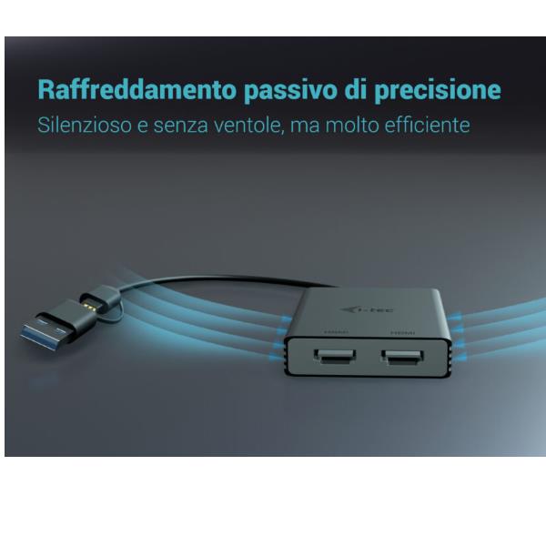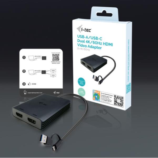 i-tec USB-A/USB-C Dual 4K/60 Hz HDMI Video Adapter