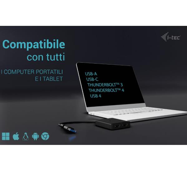 Prima di utilizzare l’adattatore è necessaria una breve installazione del driver DisplayLink. Per ulteriori informazioni, visitare il sito www.i-tec.pro/it/setup-6.