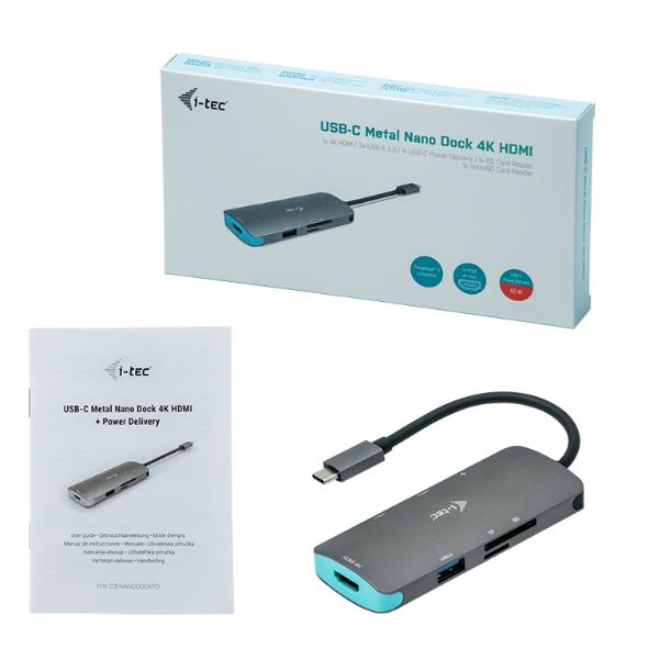 I-TEC | USB-C Nano Docking Station di metallo con 4K HDMI + Power Delivery 100 W