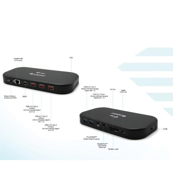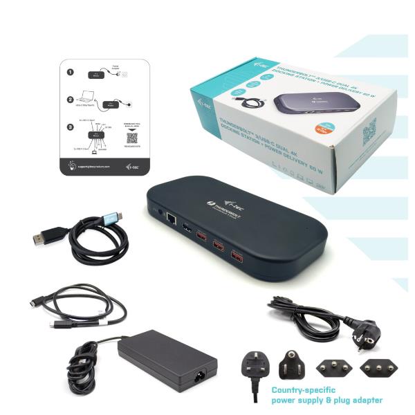 I-Tec | Thunderbolt 3/USB-C Dual 4K Docking Station + USB-C to DisplayPort Cable (1,5 m) + Power Delivery 60W