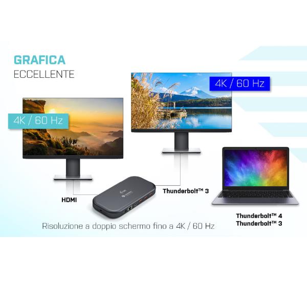 - Docking station ad alte prestazioni che supporta 2 schermi esterni