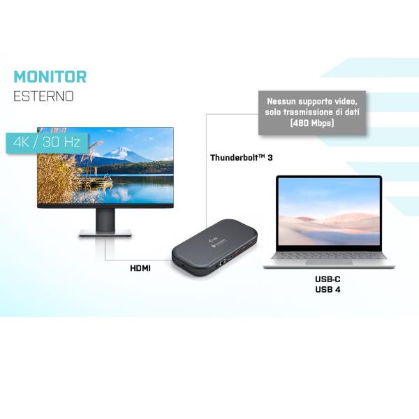 - Compatibile con laptop e tablet Thunderbolt, USB4 e USB-C (il dispositivo host deve supportare la modalità DisplayPort Alt