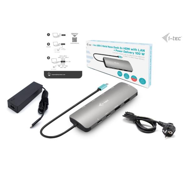 Piccola docking station USB-C in metallo in grado di supportare fino a due monitor esterni contemporaneamente*. È sufficiente collegare il laptop o il tablet (non è necessario installare i driver) per beneficiare di un rapido trasferimento di dati USB e della connessione a Internet tramite una porta LAN. Naturalmente, la docking station è in grado di alimentare il laptop fino a 100 W, consentendo di ricaricare tutti i laptop e i tablet che supportano la ricarica tramite USB-C (USB-C Power Delivery).