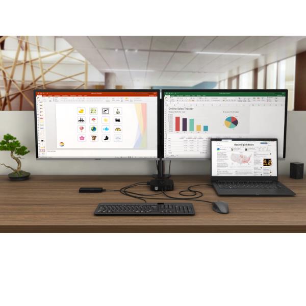 Collega fino a due monitor esterni per espandere il tuo spazio digitale. A seconda del tuo computer, puoi gestire un singolo schermo 4K a 60Hz per una nitidezza impeccabile, oppure due monitor in contemporanea per moltiplicare la tua produttività. Hai un monitor ad alta frequenza di aggiornamento per il gaming? Questa dock lo supporta senza problemi.