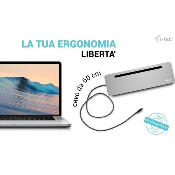 i-tec USB-C Metal Ergonomic 3x 4K Display Docking Station con Alimentatore 100W