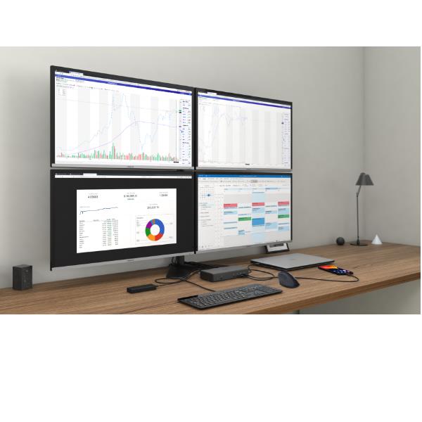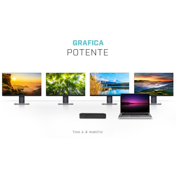 - Configurazione Quad Monitor: Collega fino a quattro schermi. Supporta combinazioni potenti come due monitor 4K a 60Hz e due schermi ad alta risoluzione, per un desktop esteso senza compromessi.