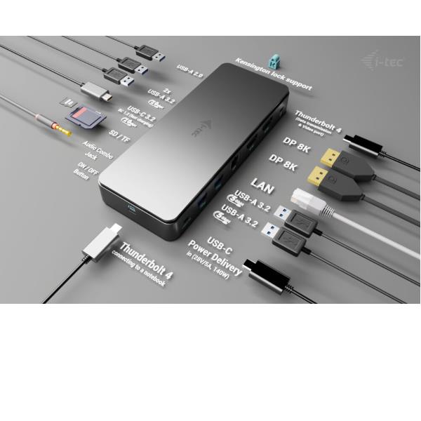Trasforma il tuo laptop in una vera e propria postazione di lavoro con la docking station i-tec Thunderbolt 4. Basta un solo cavo per collegare tutto: monitor, periferiche, rete e alimentazione. La confusione di cavi sul tuo tavolo è finita.