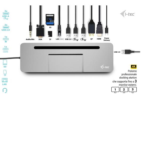I-TEC | USB-C Metal Ergonomic 4K 3x Display Docking Station + Power Delivery 85 W