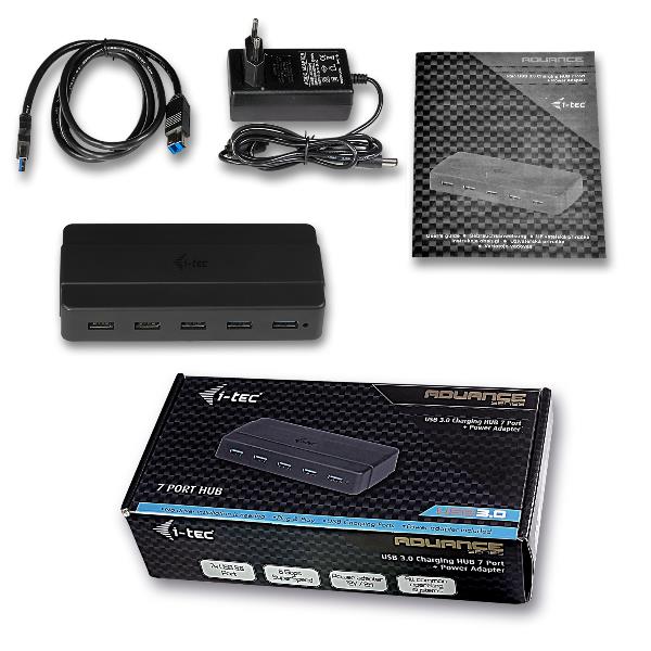 i-tec HUB USB di ricarica 3.0 a 7 porte con adattatore di alimentazione è un accessorio ideale per tutti quelli che non dispongono di notebook, ultrabook o PC con quantità sufficiente di porte USB e sono costretti a collegare e scollegare in continuazione i dispositivi USB preferiti, tipo chiavette, cellulari, tablet, fotocamere digitali, lettori MP3, stampanti ecc.