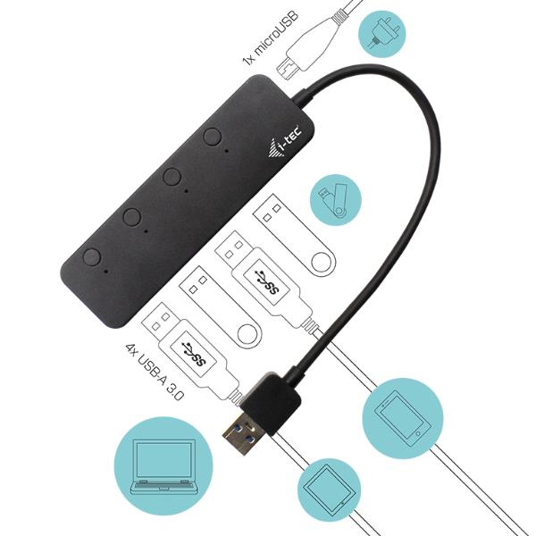- 4 porte USB 3.0 con commutazione individuale e supporto ricarica veloce