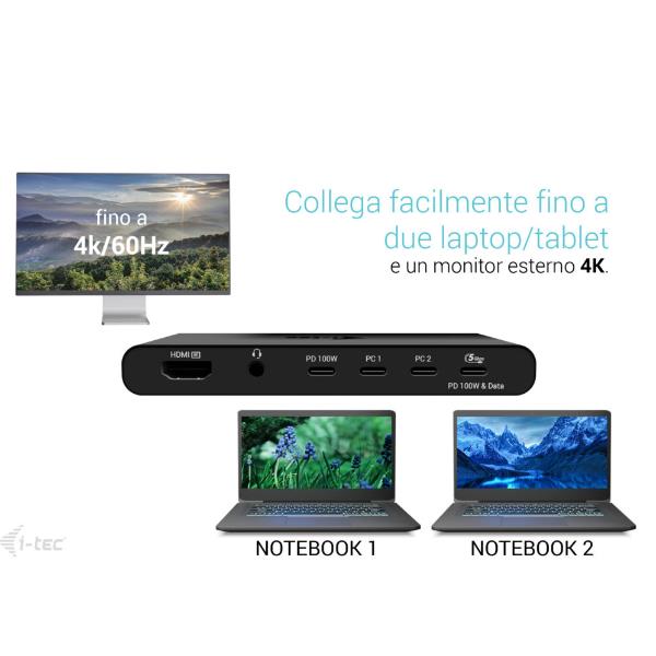 Una docking station per due host: commutazione istantanea tra PC1 e PC2