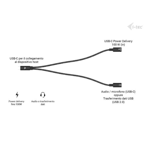 1 cavo splitter USB-C (30 cm) per il collegamento al dispositivo host, suddiviso in:1 ingresso USB-C PD da 100 W