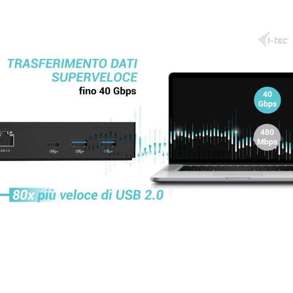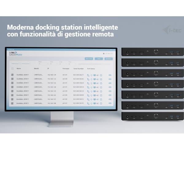* A causa del funzionamento della tecnologia Thunderbolt”, i-tec DockMate può gestire la docking station stessa (ad esempio accensione/spegnimento remoto, risparmio energetico programmato o aggiornamenti del firmware), ma non può controllare direttamente le singole porte come USB, LAN, audio o uscite video.