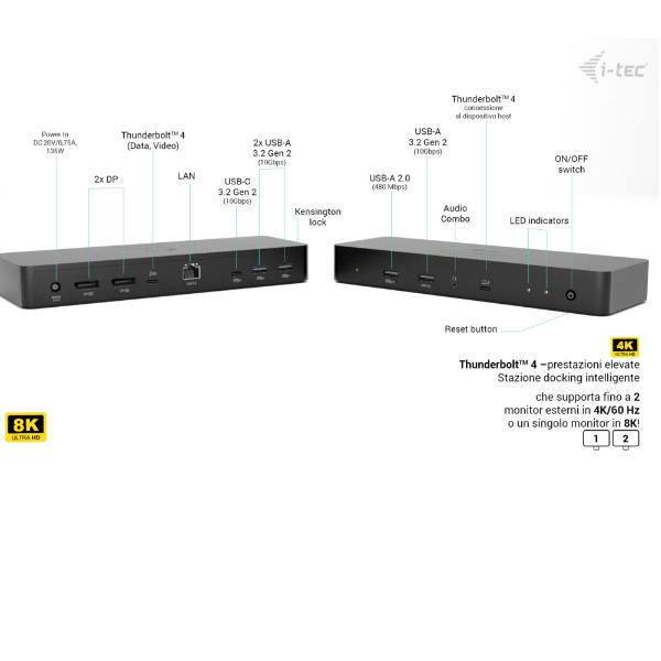 Una docking station Thunderbolt“ 4 di nuova generazione ad alte prestazioni che offre un’uscita fino a due monitor 4K esterni o un singolo display 8K. Compatibile con praticamente tutti i notebook dotati di porte USB-C**, USB4 o Thunderbolt e supporta tutti i principali sistemi operativi.