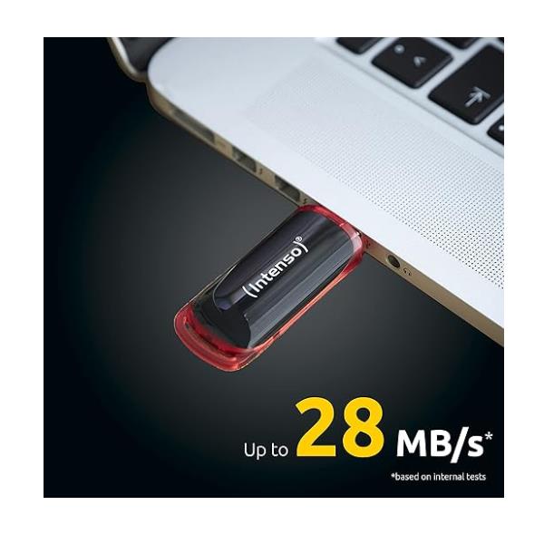 Sorprendentemente stravagante: la linea Business Intenso in un design nero e rosso. A scuola, in ufficio o a casa, con una velocità di lettura fino a 28 MB/s e una velocità di scrittura di 6,5 MB/s, sei attrezzato per la vita quotidiana moderna. La capacità di 8 GB non ti basta? Con un massimo di 64 GB, troverai la variante giusta e spazio sufficiente per tutti i tuoi file importanti. Il cappuccio rinforzato protegge l’interfaccia USB da urti e danni.