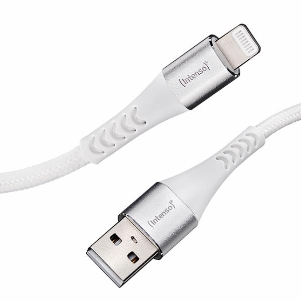 Ti presentiamo il cavo USB Intenso A315L, il tuo compagno affidabile per la ricarica dei dispositivi Apple con connettore Lightning e il trasferimento dati. Con una velocità di trasmissione dati di 480 Mbps puoi trasferire rapidamente foto, video e altri dati dal tuo iPhone o iPad al PC, liberando prezioso spazio di archiviazione. Questo cavo da USB-A a Lightning vanta una protezione antipiega rinforzata, una resistenza in nylon intrecciato ed eleganti connettori in alluminio.