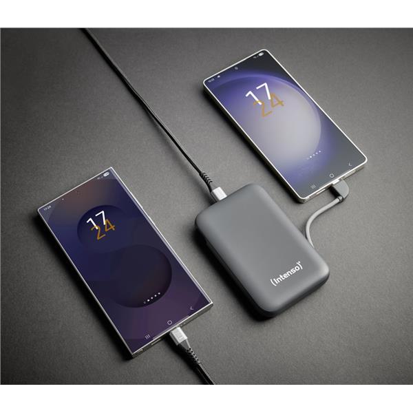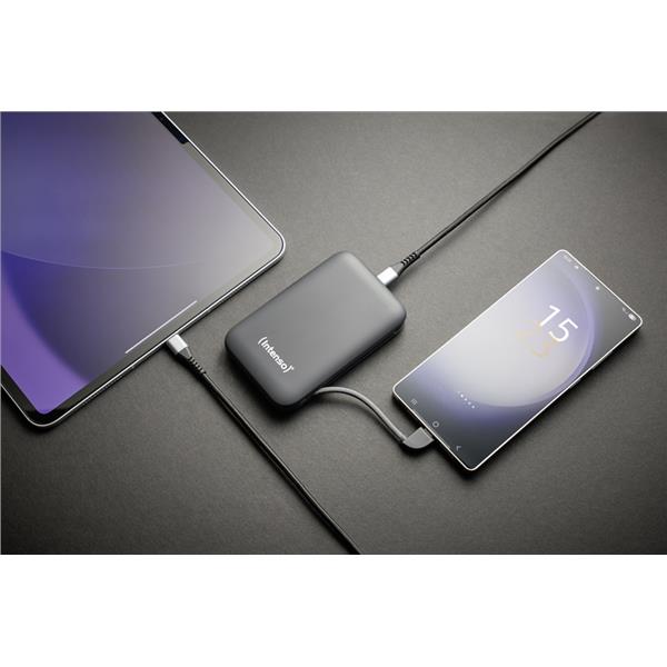 Intenso Powerbank S10000 offre una ricarica rapida per smartphone, tablet e altri dispositivi USB-C con una capacità di 10.000 mAh e una potenza in uscita fino a 20 W. Grazie alle tecnologie Power Delivery e PPS, la velocità di ricarica è regolata in modo ottimale. Il cavo USB-C integrato offre la massima flessibilità, mentre la porta USB-C aggiuntiva cDesign elegante.