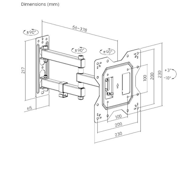 Staffa 3 snodi per tv fino a 43″