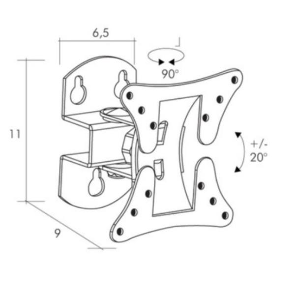 Supporto ad uno snodo VESA 100×100 serie UNIVERSAL in lamiera d’acciaio, pratico e funzionale per monitor e TV da 10" a 32". Tutti i cavi di collegamento ed i tasselli di fissaggio sono nascosti in apposite carenature in plastica. I distanziali in PVC in dotazione garantiscono l’isolamento del supporto rispetto al monitor.
