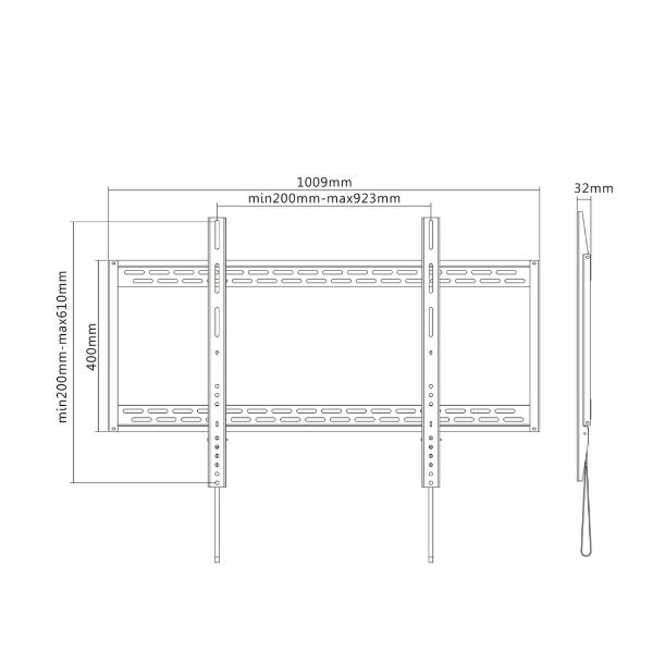 Sistema di fissaggio universale ultrasottile e ultrarobusto per monitor dai 60″ ai 100″ fino a 100kg.