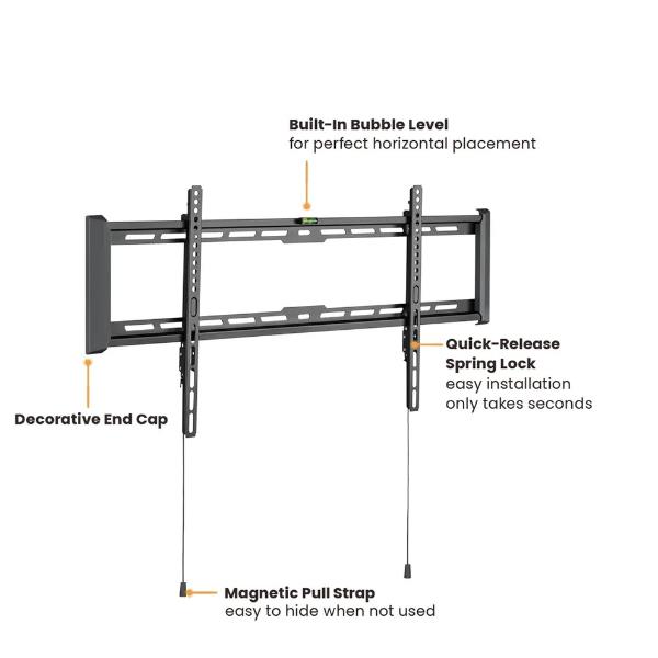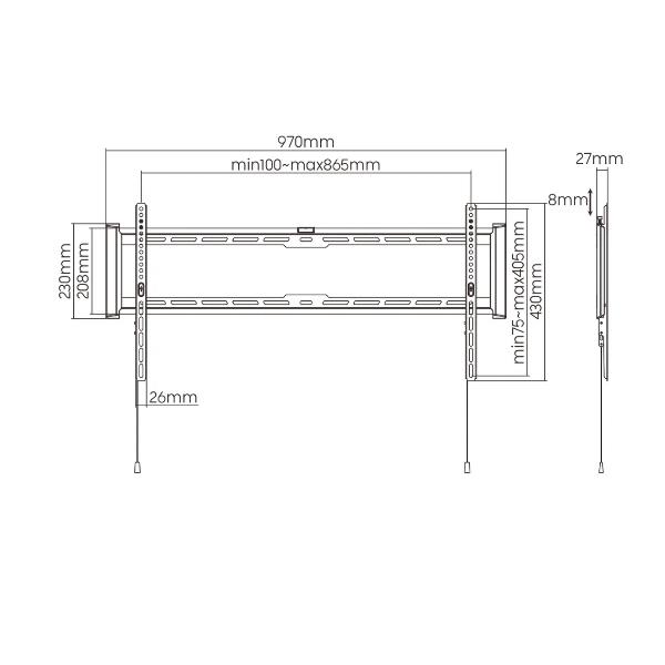 Una staffa da parete invisibile, con la forza di un sollevatore. Vuoi che il tuo monitor da 90″ o il tuo schermo touch interattivo sembri fluttuare sulla parete? Questa staffa lo rende possibile, con un profilo di soli 27 millimetri di spessore.