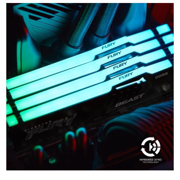 - Illuminazione RGB avanzata: Personalizza ogni effetto luminoso con il software Kingston FURY CTRL. La tecnologia brevettata di sincronizzazione a infrarossi assicura transizioni di colore perfettamente fluide e uniformi su tutti i moduli.