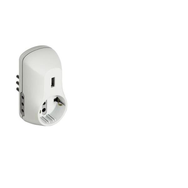 adattatore B3 – 2 prese 10A e 1 presa tedesca – spina 10A – 1 presa USB alimentata 5Vdc max 1A – colore bianco – appendibile