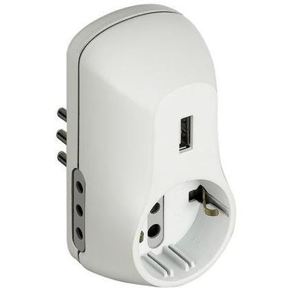 Adattatore Presa Legrand 2 Prese Italiane + USB Bianco 10A