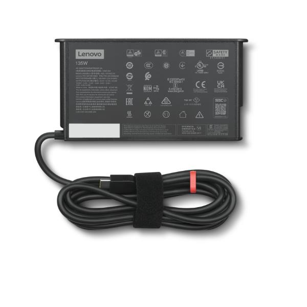 Alimentatore originale Lenovo da 135W con connettore USB-C, progettato per ricaricare in modo rapido e sicuro i notebook ThinkPad compatibili. Garantisce prestazioni stabili e affidabili, ideale per l’uso in ufficio o in mobilità.