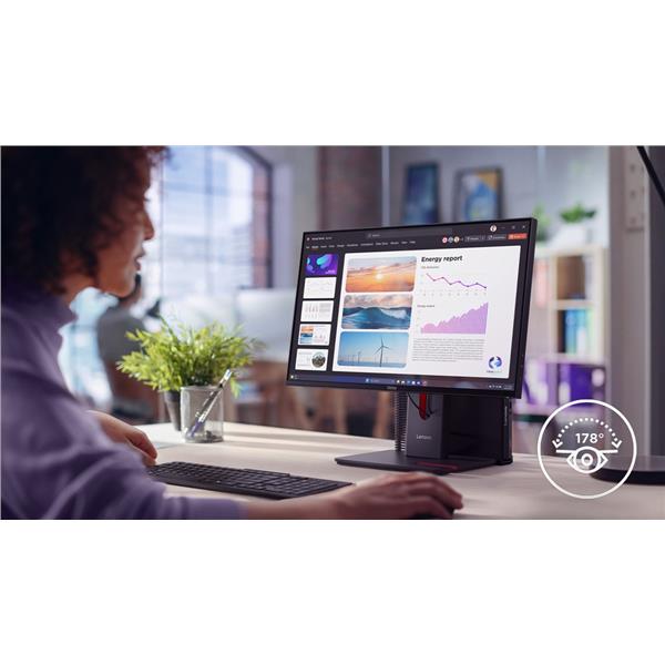 Il monitor ThinkVision T24-40 è dotato di uno schermo FHD IPS da 23,8 pollici con una vasta gamma di colori del 99% sRGB e del 99% BT.709, che offre immagini vivide da qualsiasi angolazione. Abbina il tuo schermo al tuo flusso di lavoro con una frequenza di aggiornamento dinamica di 48-120 Hz. Si adatta dinamicamente per abbinarsi al contenuto sullo schermo, risultando in un movimento più fluido per immagini in rapido movimento o tassi ridotti per il risparmio energetico durante la visualizzazione di immagini statiche. È costruito con un display ultra sottile a quattro lati, riducendo le distrazioni durante la visualizzazione e mostrando di più ciò che deve essere visto. La tecnologia integrata Natural Low Blue Light protegge i tuoi occhi dalla fatica anche durante lunghe ore di lavoro. Inoltre, la certificazione TÜV Rheinland Eye Comfort a 5 stelle garantisce che la luce blu tossica sia significativamente ridotta rispetto a prima.