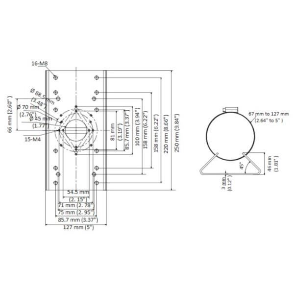 – Diametro regolabile da 67 mm a 127 mm