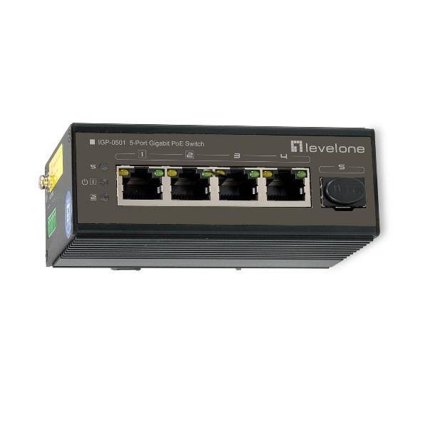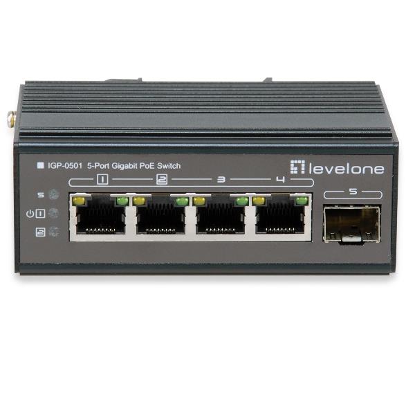 Lo switch Ethernet di settore LevelOne IGP-0501 fornisce 4 porte PoE 10/100 / 1000Base più 1 porta Gigabit SFP per abilitare la rete ad alta velocità in ambienti mission-critical. Con il montaggio DIN-pioggia standard industriale; questo switch può essere facilmente installato nell’armadio, inoltre i LED di stato chiaramente visibili forniscono un semplice monitoraggio dell’attività di collegamento delle porte. Inoltre, gli slot SFP supportano moduli collegabili che consentono di scegliere tra una varietà di ricetrasmettitori. Questo switch è Power Sourcing Equipment (PSE) ed è pienamente conforme allo standard IEEE 802.3at PoE con un budget di alimentazione massimo di 30 W per porta. Aiuta a ridurre drasticamente i costi di cablaggio dell’infrastruttura eliminando il cablaggio elettrico e meno UPS necessari. Inoltre, è compatibile con i dispositivi PD standard IEEE802.3af.