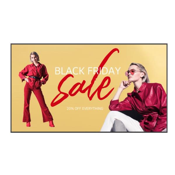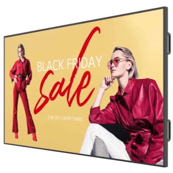 La luminosità di 500 nit assicura prestazioni eccellenti anche sotto luci intense, rendendolo perfetto per vetrine, sale conferenze, aeroporti o centri commerciali. La cornice sottile e uniforme da 17 mm permette di creare installazioni multi-display quasi senza soluzione di continuità.