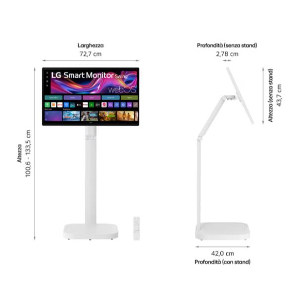 Abbiamo scelto il LG Smart Monitor Swing per la sua capacità unica di unire produttività da ufficio e intrattenimento da salotto in un unico, versatile dispositivo. Il nostro team di esperti ha testato personalmente la fluidità del touch screen e la stabilità della base mobile, selezionandolo per chi cerca una soluzione intelligente e libera da cavi. Se hai dubbi su come integrarlo al meglio con il tuo PC o la tua smart home, la nostra assistenza tecnica è a tua disposizione per una consulenza personalizzata. Completa l’acquisto online ora per riceverlo comodamente a casa, oppure vieni a provare di persona la sua mobilità nel nostro negozio fisico: ti mostreremo tutte le sue potenzialità.